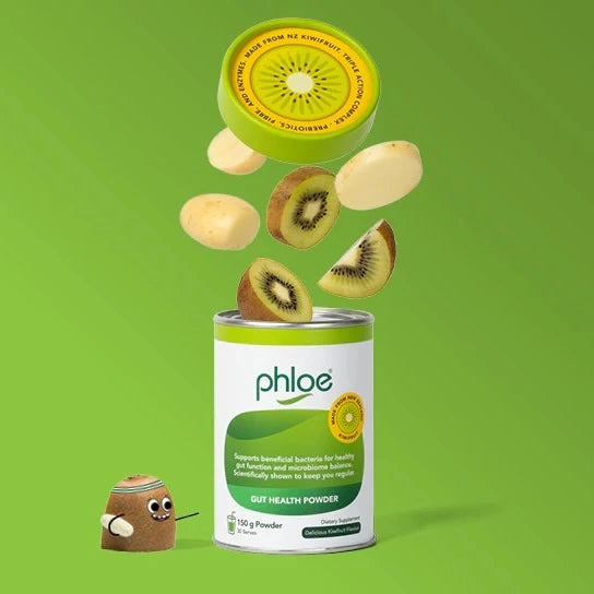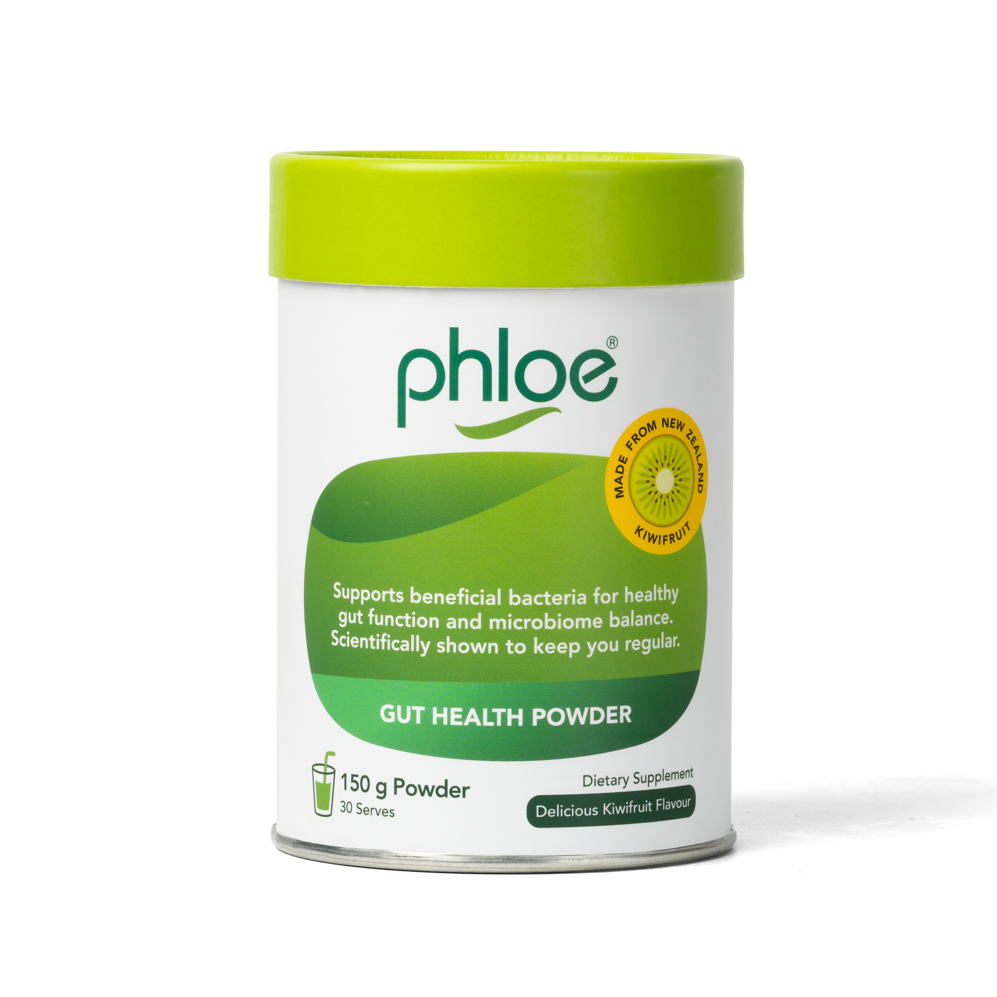 - Easy to take and deliciously kiwifruit-flavoured, Phloe Gut Health Powder can be added to water, smoothies, and yogurt.